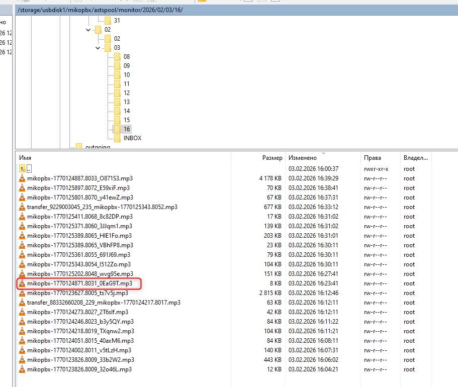 В общих настройках записи разговоров включены, так же включена запись внутренних разговоров и сохранение в стерео режиме (нужно для транскрибации остальных разговоров).