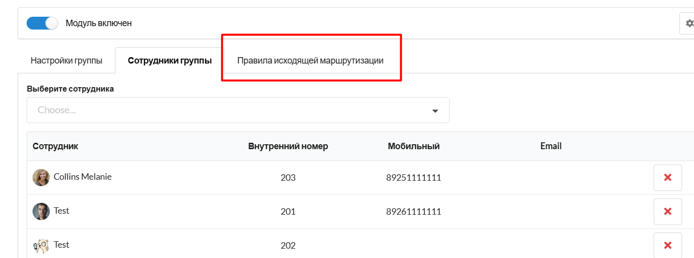 Здравствуйте. После отключения модуля “Управление телефонными группами” исходящие звонки начали проходить. Причина в нем значит. Исправить можно эту ошибку? Кстати, в инструкции на сайте есть вкладка “Исходящая маршрутизация” в этом модуле. В настройках телефонии этой вкладки нет.