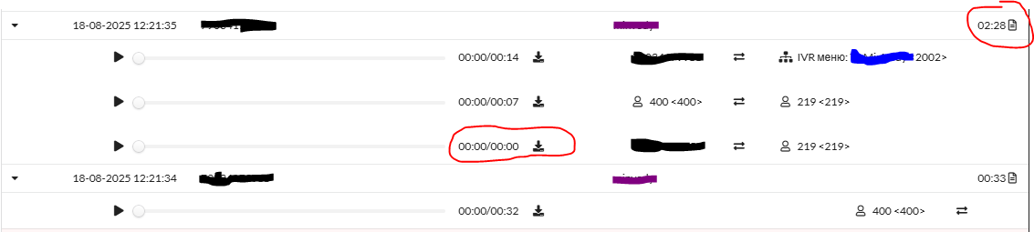 Добрый день! Версия софта 2024.1.114. Версия астера 20.7. После чистой установки наблюдаем проблемы с записями разговоров, НО только одном (из трех) провайдере. Запись не воспроизводит первые 8 секунд разговора - просто тишина вместо слов приветствия, далее начинается разговор с середины, потом перескакивает на начало, где-то в середине может быть конец разговора. Куда можно смотреть? Все кодеки в нормах. Именно на одном провайдере такое. Может можно как то сбросить или переустановить сервис, отвечающий за запись?