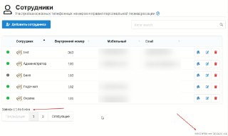 В текущей версии поиск по сотрудникам регистрочувствителен, а пагинация настроена на небольшое количество записей на странице. Это известное ограничение текущей версии, требующее доработки для улучшения пользовательского опыта. Рекомендуется создать запрос на улучшение на GitHub проекта.